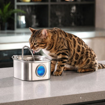 La nostra fontanella in acciaio inox di grado medicale mantiene l’acqua pulita, fresca e in movimento, proprio come le attrezzature del tuo veterinario. Niente più strofinacci, niente più dubbi.